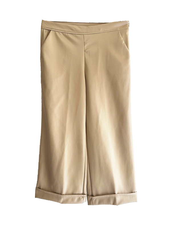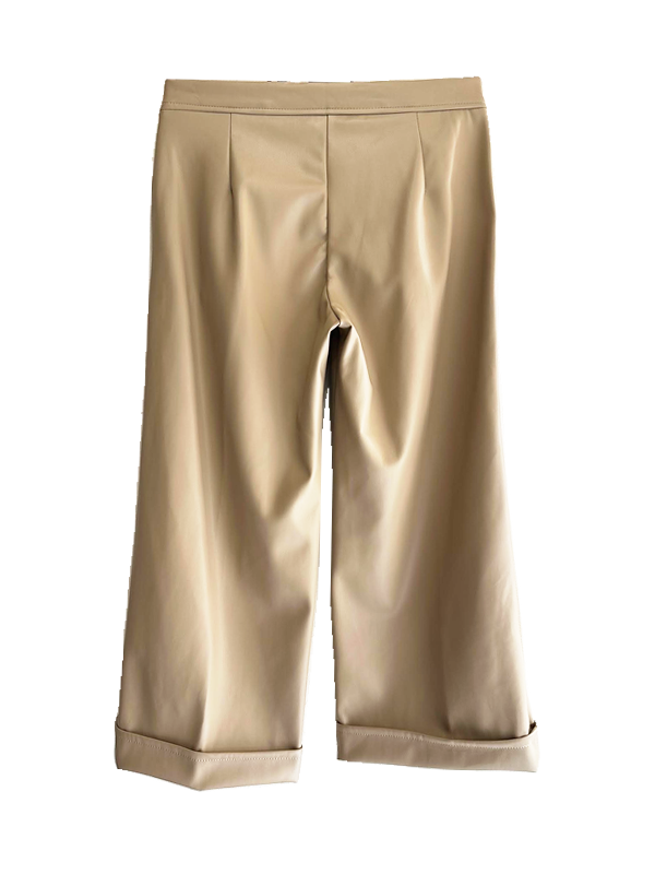 大人っぽくはけて今シーズンらしい雰囲気を演出するエコレザーパンツ。