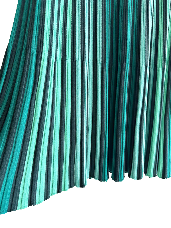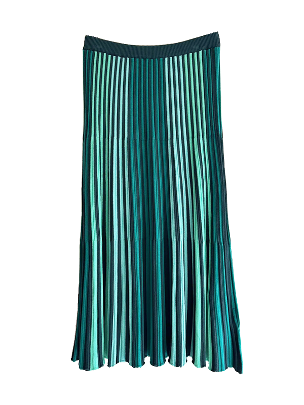 柔らかく着心地の良い素材を使用したワイドリブニットスカート。グリーントーンのグラーデーションが素敵な印象に。ウエストゴム仕様でストレスフリーに過ごせて、カジュアルになりすぎず、上品な印象をキープ。