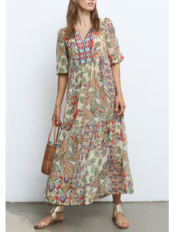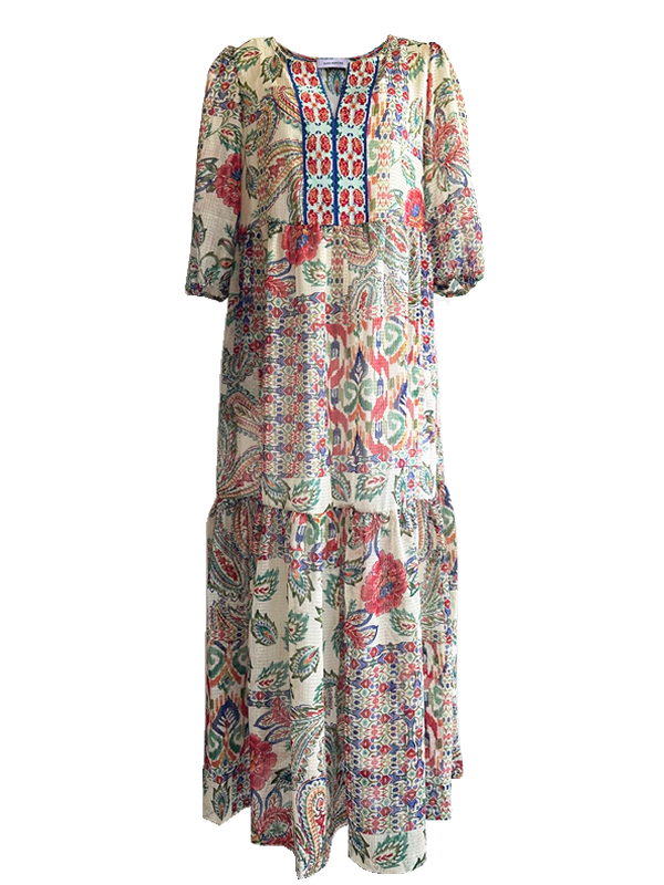 大人にぴったりなエスニックプリントカフタンドレス