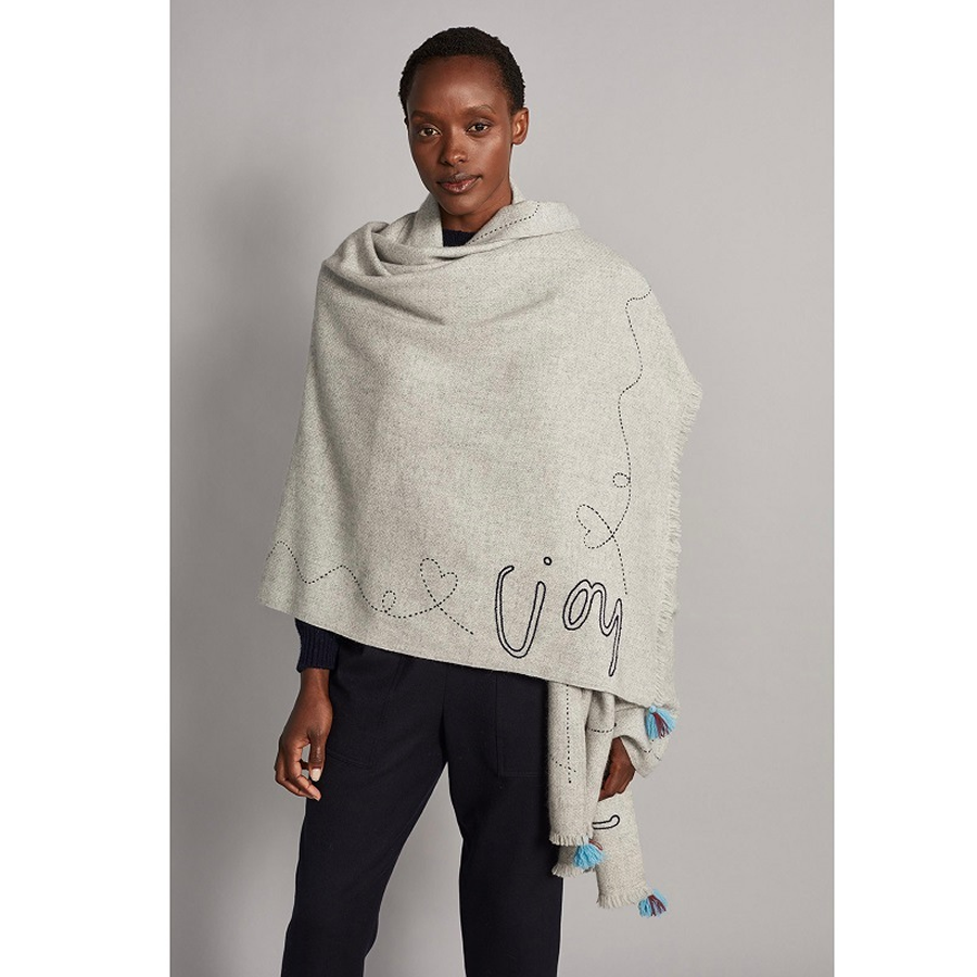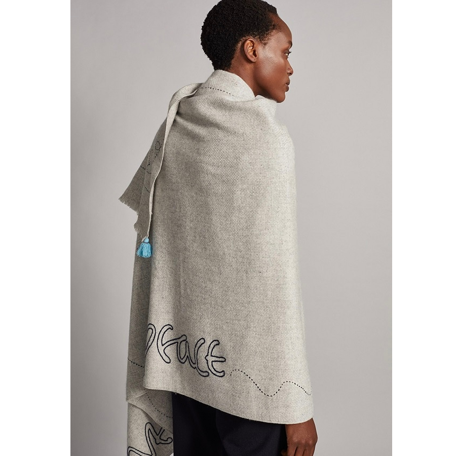 厳選されたウール素材で温かみのあるナチュラルな風合いが魅力の大判ストール。LOVEの刺繍がポイントに。シンプルかつサスティナブルなアイテムなのでタイムレスに愛用できる